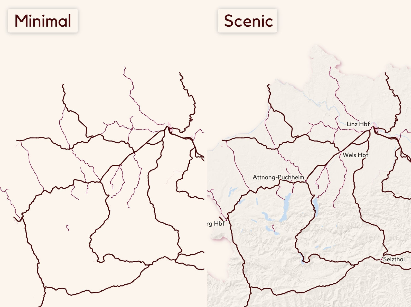 Minimal: Reduziert auf das Wesentliche konzentriert sich dieser Stil ausschließlich auf die Schönheit der Eisenbahnlinien.
